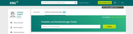 Um bei Xing ein Unternehmensprofil anzulegen, gehen Sie im Bereich „Unternehmen“ auf „Produkte und Dienstleistungen“ und dann auf „Eigene Seite erstellen“.
