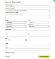 Füllen Sie dort die entsprechenden Unternehmensinformationen aus und klicken Sie auf „Business-Seite erstellen“.